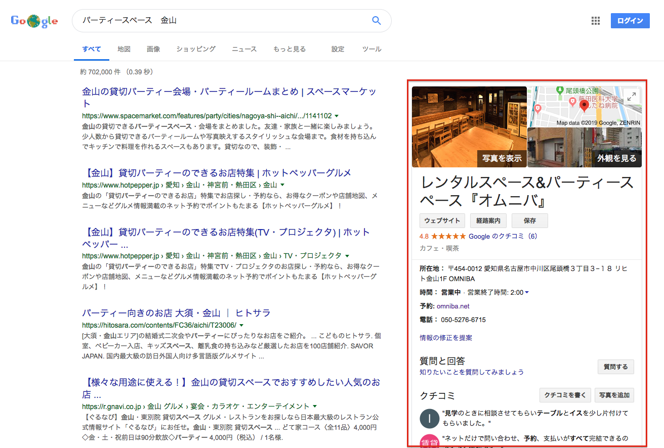 駅名や地域名で検索した際に自然検索結果(SEO)の上段に、Googleマップ掲載のお店が表示される様になりました。